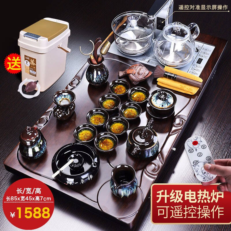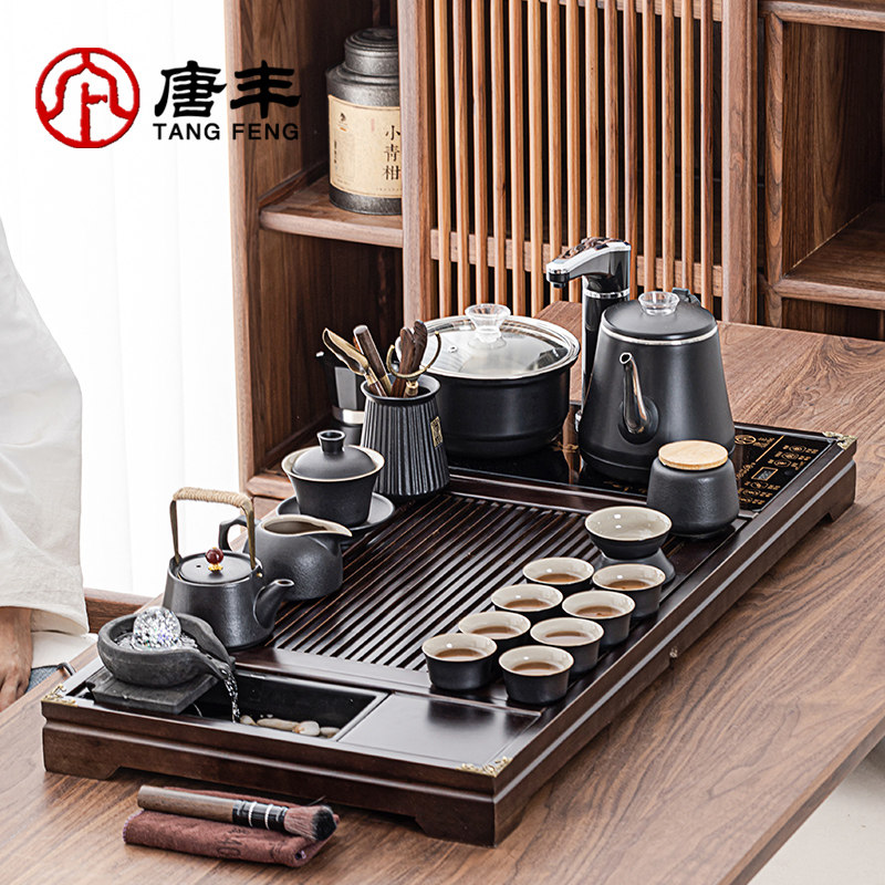 唐丰茶具套装家用客厅黑檀实木茶盘功夫茶杯办公会客全自动烧水茶