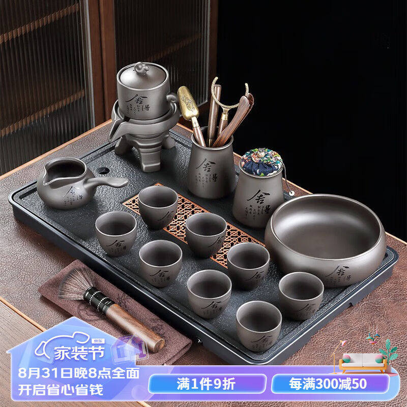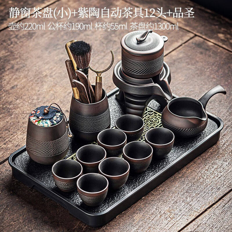 唐丰紫砂自动茶具套装家用石磨旋转茶壶懒人泡茶功夫茶杯