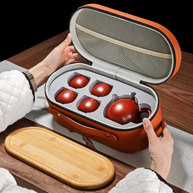 唐丰紫砂旅行茶具带茶盘户外便携收纳包功夫泡茶壶一壶四杯快客杯