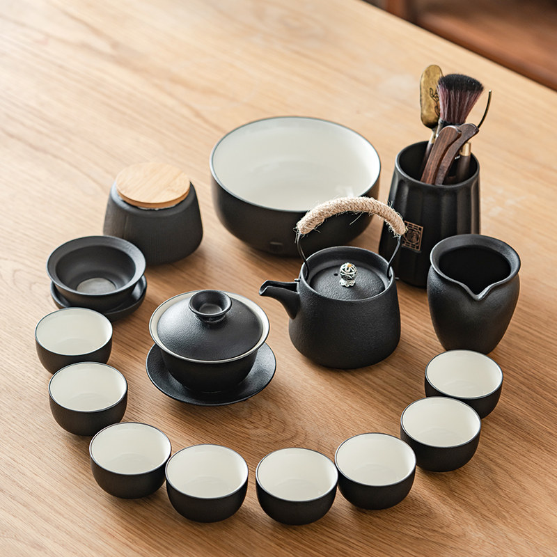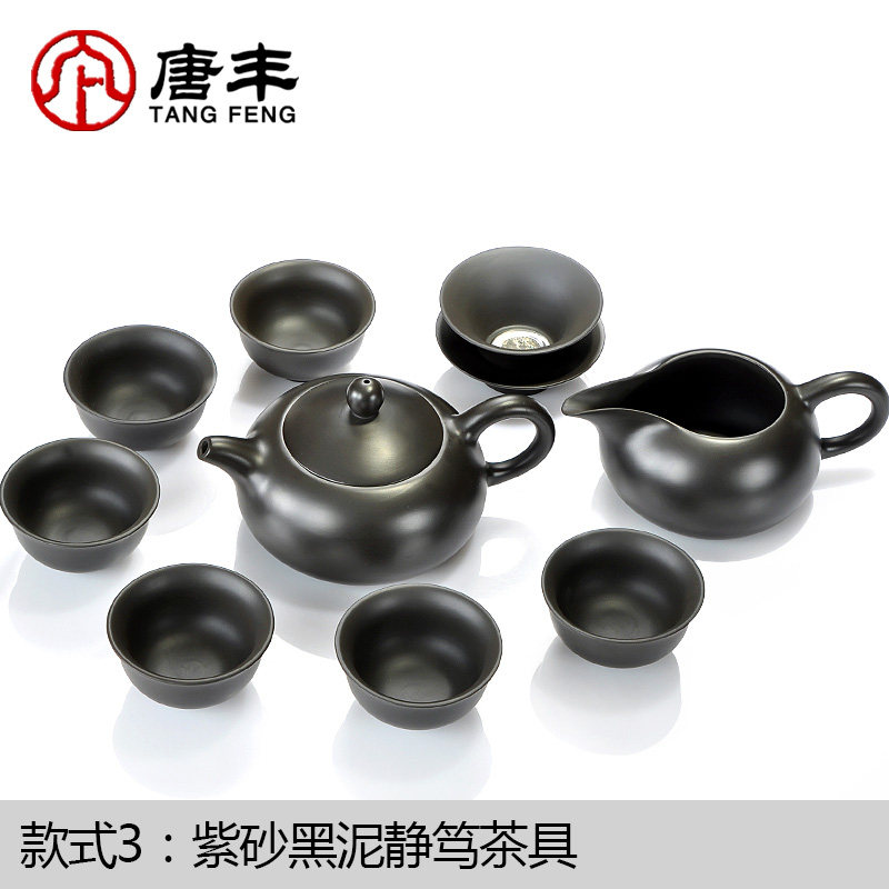 唐丰整套黑陶茶具套装家用小套陶瓷盖碗泡茶壶功夫茶杯办公室茶道