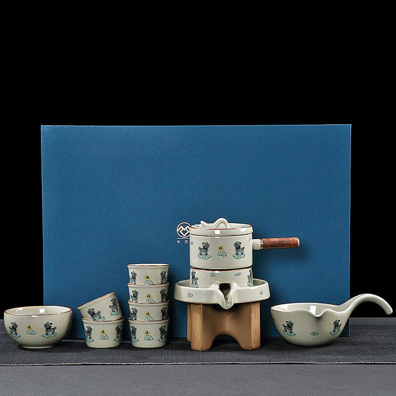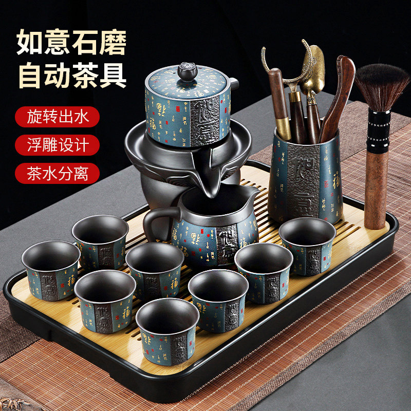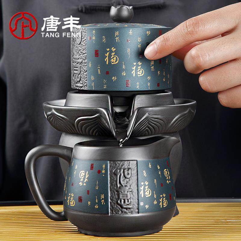 唐丰新款紫砂茶具套装陶瓷家用创意全自动手工中式旋转如意石磨