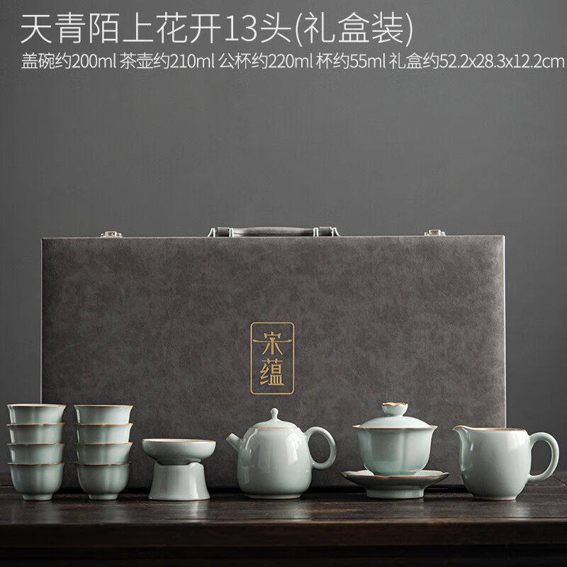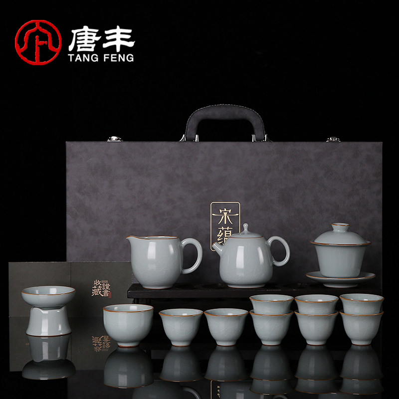唐丰汝窑功夫茶具套装轻奢高档家用汝瓷茶杯高端泡茶壶礼品礼盒装
