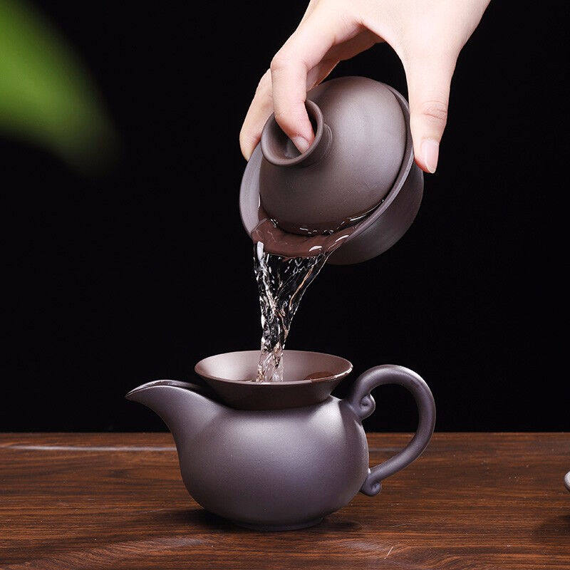 唐丰紫陶功夫茶具紫砂复古盖碗茶杯家用茶壶套装石磨懒人防烫泡茶