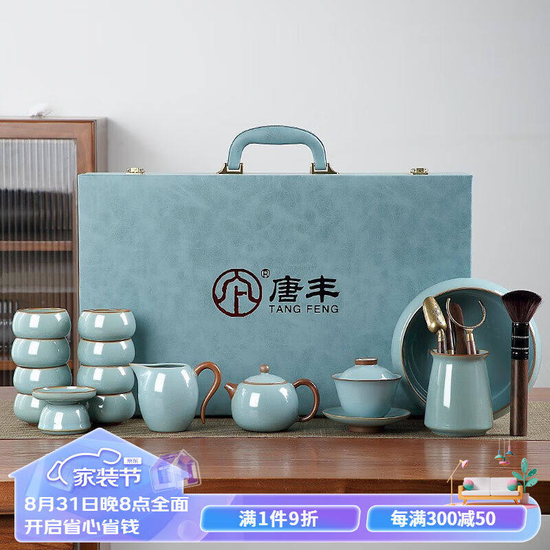 唐丰汝窑茶具套装轻奢高档家用汝瓷功夫茶杯高端泡茶壶网红一套餐