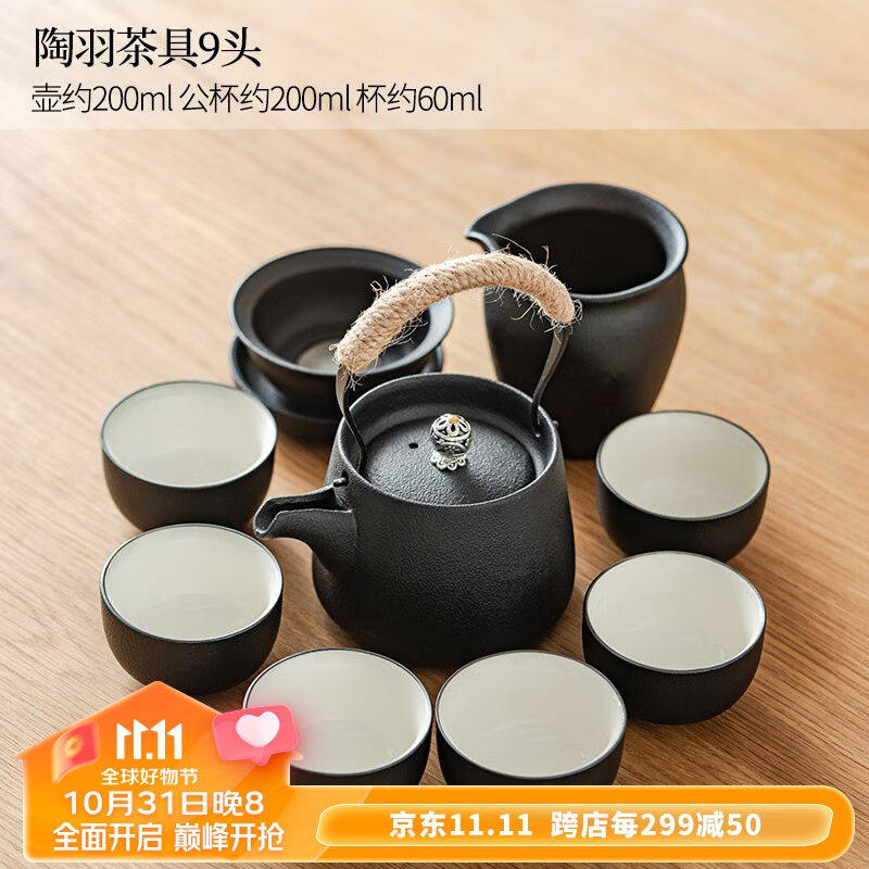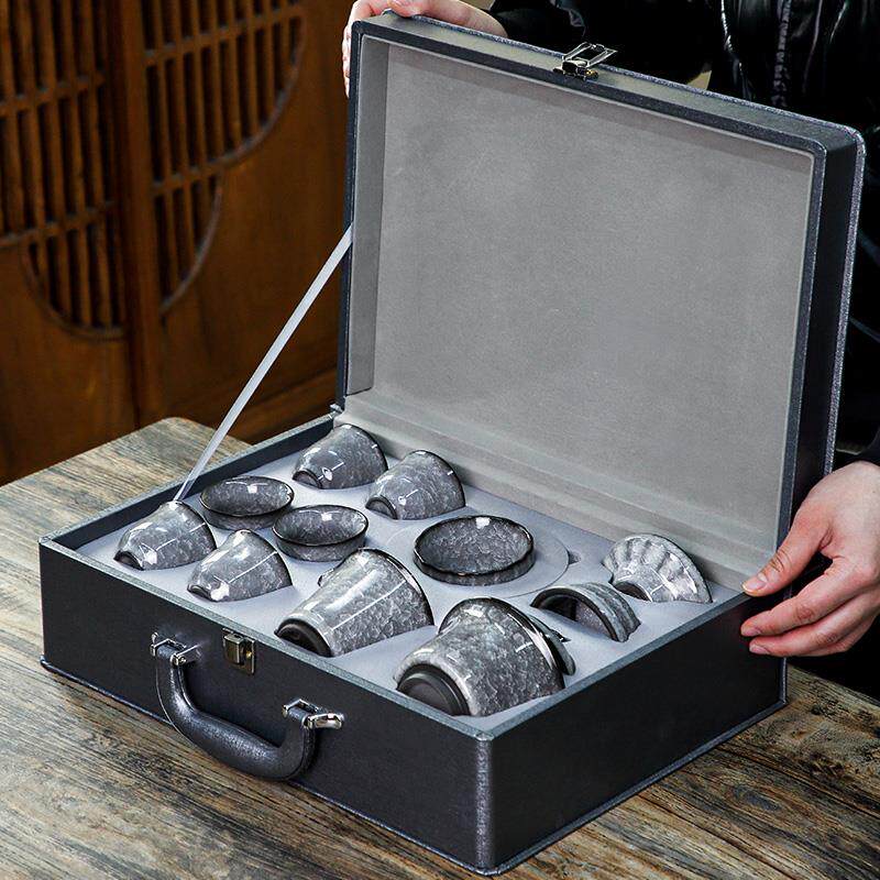 唐丰陶羽复古粗陶陶瓷套装茶杯办公会客轻奢功夫茶具高端礼盒s