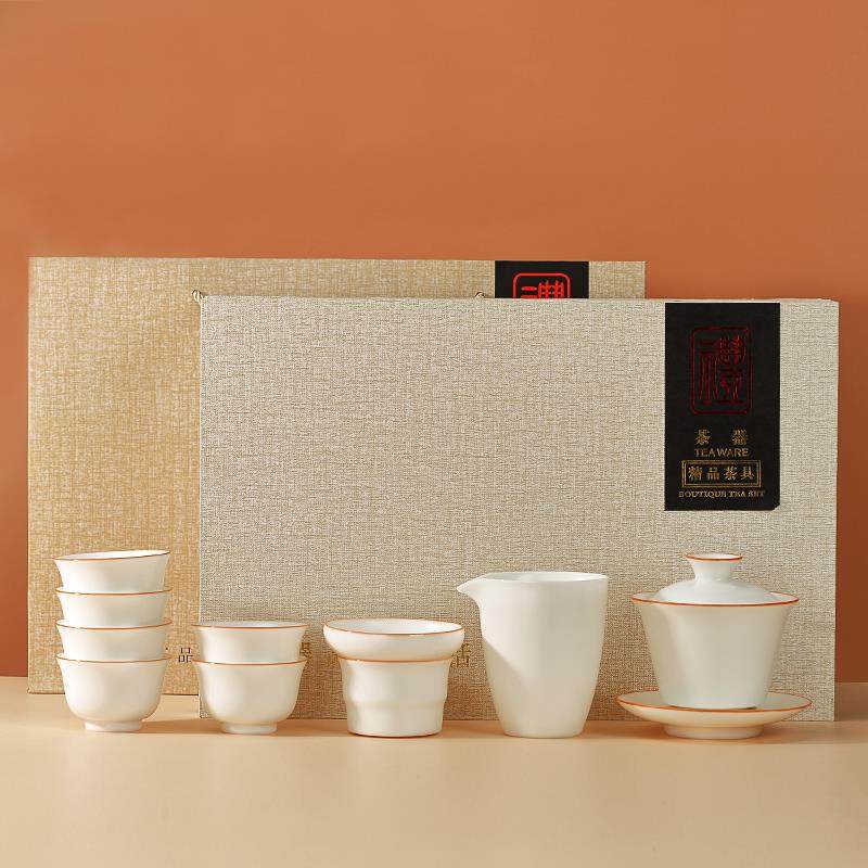 高档唐丰羊脂玉瓷德化白瓷茶具套装家用功夫礼盒装中秋节礼品送领
