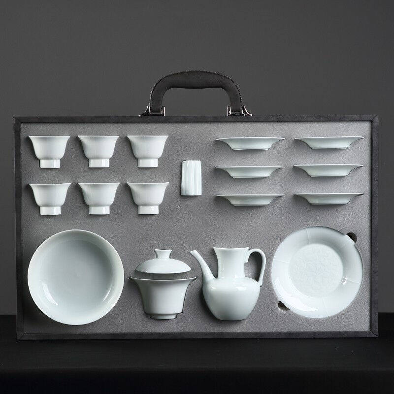 唐丰(TANGFENG)工艺美术师李桂莲白汝瓷茶具套装汝窑可养开片礼