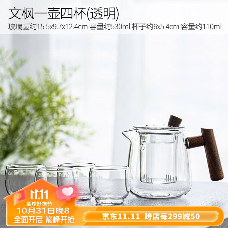 唐丰玻璃茶具一壶四杯办公家用茶水分离侧把泡茶壶透明喝茶杯简约