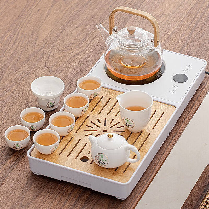 唐丰白瓷功夫茶具茶盘套装家用轻奢电陶炉煮茶器喝茶简约整套可拆