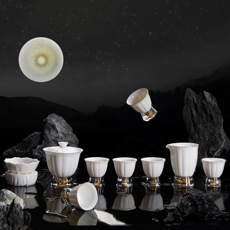 唐丰宋蕴茶具套装羊脂玉白瓷轻奢高档水晶藏金功夫茶器创意盖碗茶