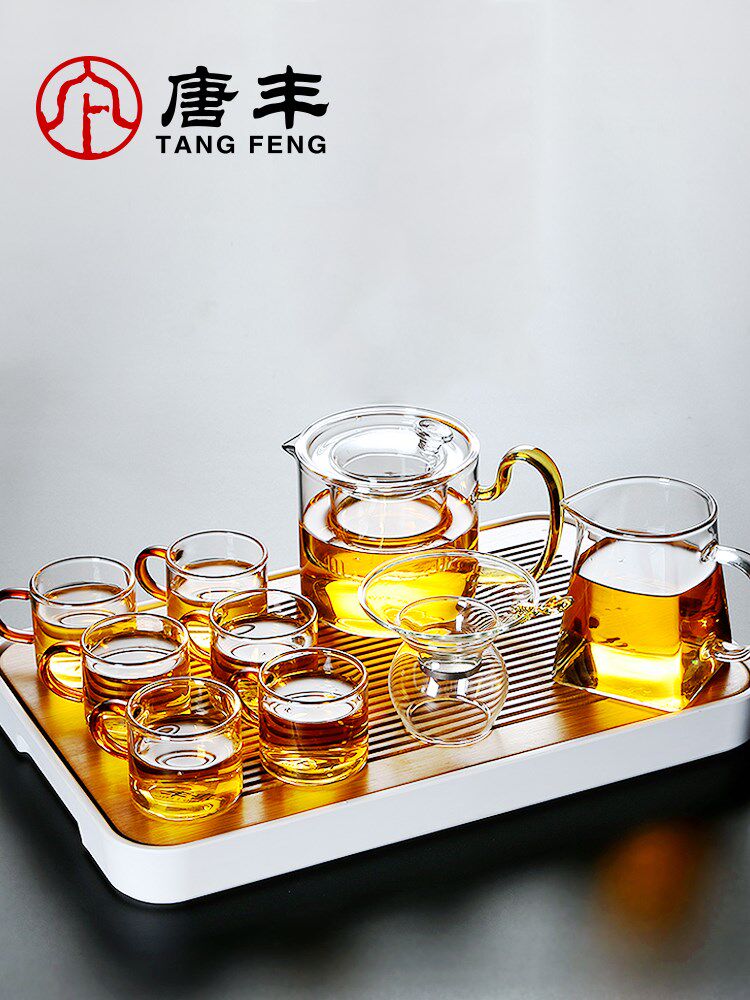 唐丰玻璃茶具套装轻奢高档家用办公室会客泡茶壶手抓壶礼盒装小套