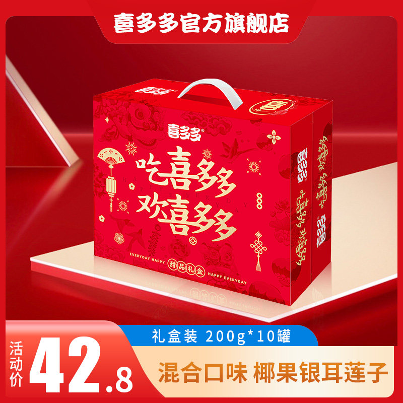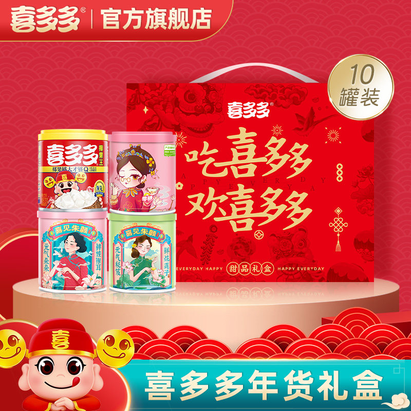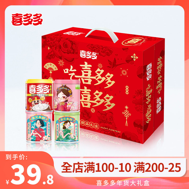 喜多多年货礼盒装水果罐头椰果王鲜炖银耳莲子羹休闲零食过年送礼