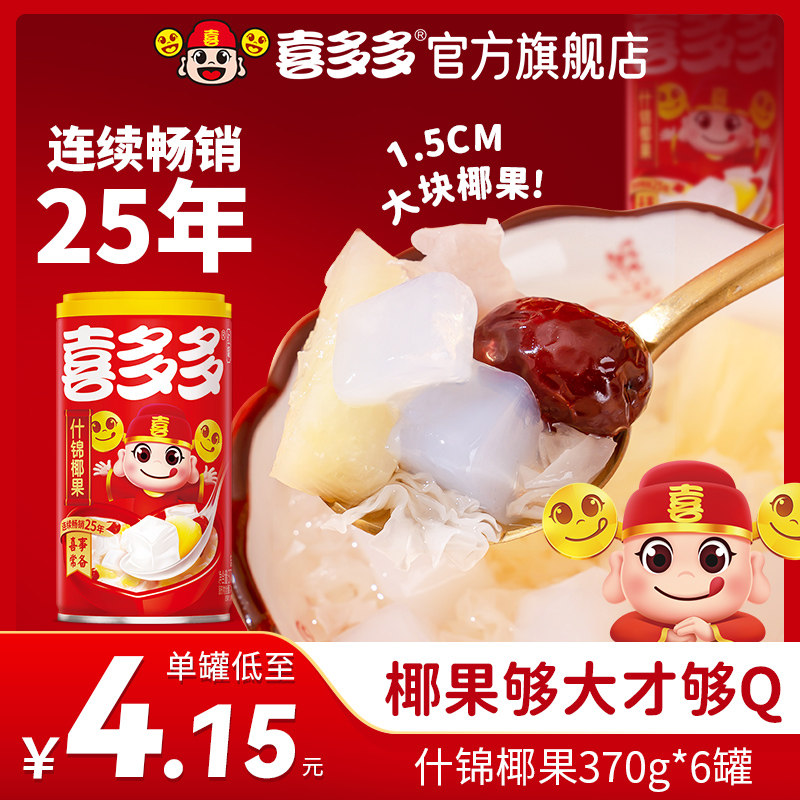 喜多多什锦椰果王370g*6罐整箱装菠萝银耳水果罐头休闲即食小零食