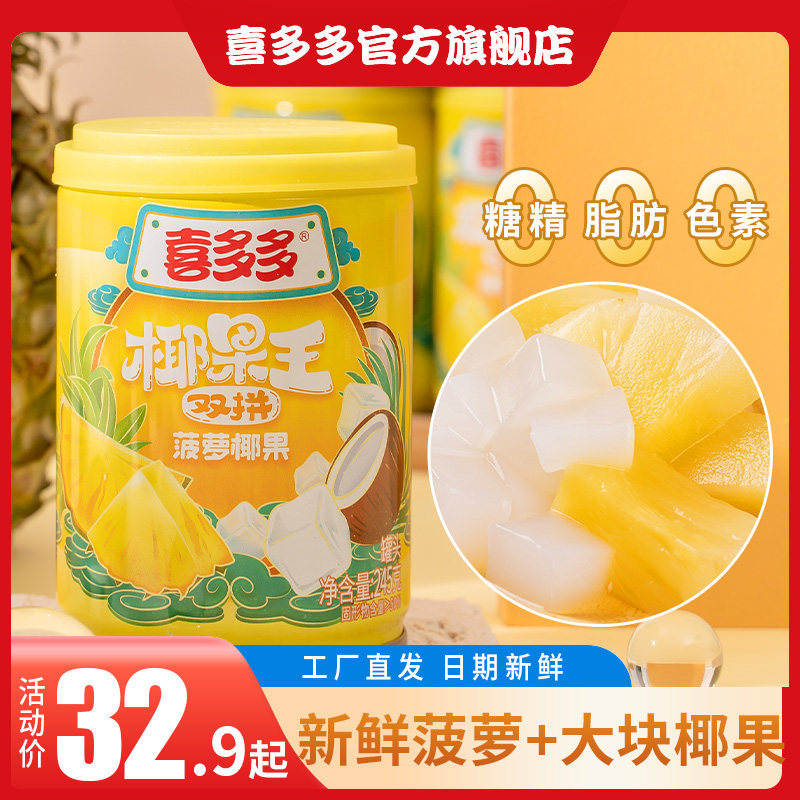 喜多多椰果王水果罐头零食整箱官方旗舰店即食什锦菠萝椰肉双拼