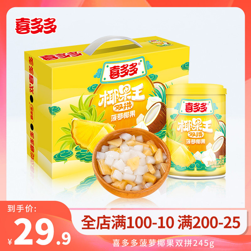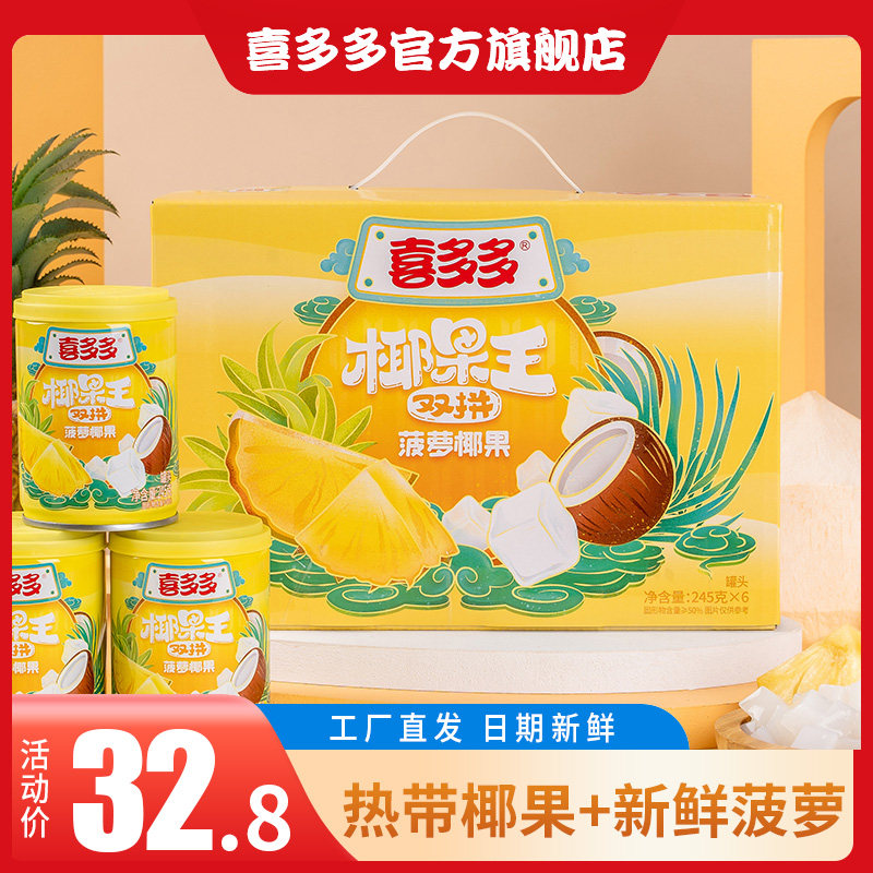 喜多多椰果王菠萝椰果双拼245*6罐什锦水果罐头年货礼盒饮料甜品