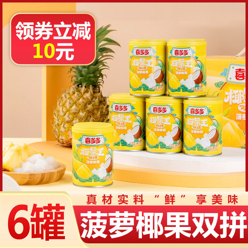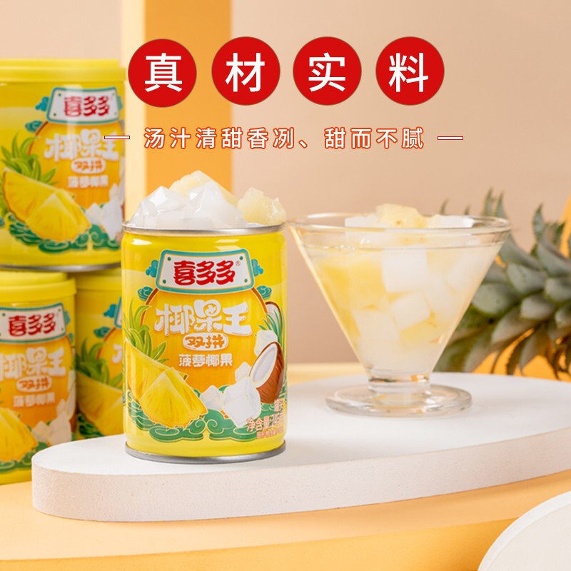 喜多多椰果王菠萝椰果双拼水果罐头夏季休闲零食甜品饮料245g*6罐