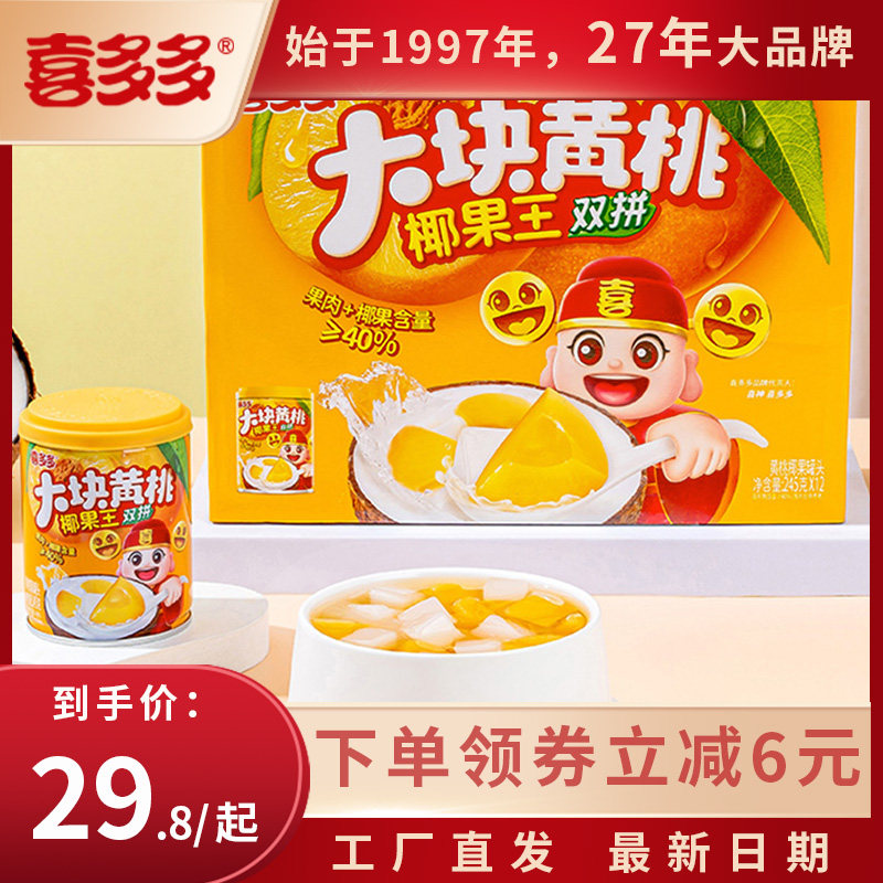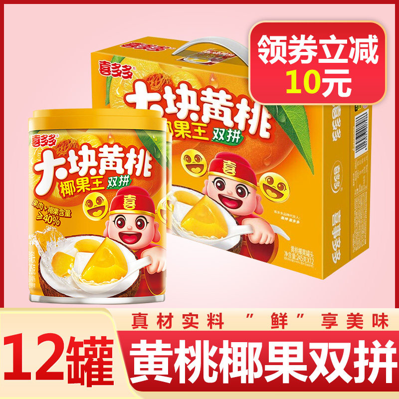 喜多多黄桃椰果双拼什锦水果罐头椰果王整箱休闲零食245g*12罐