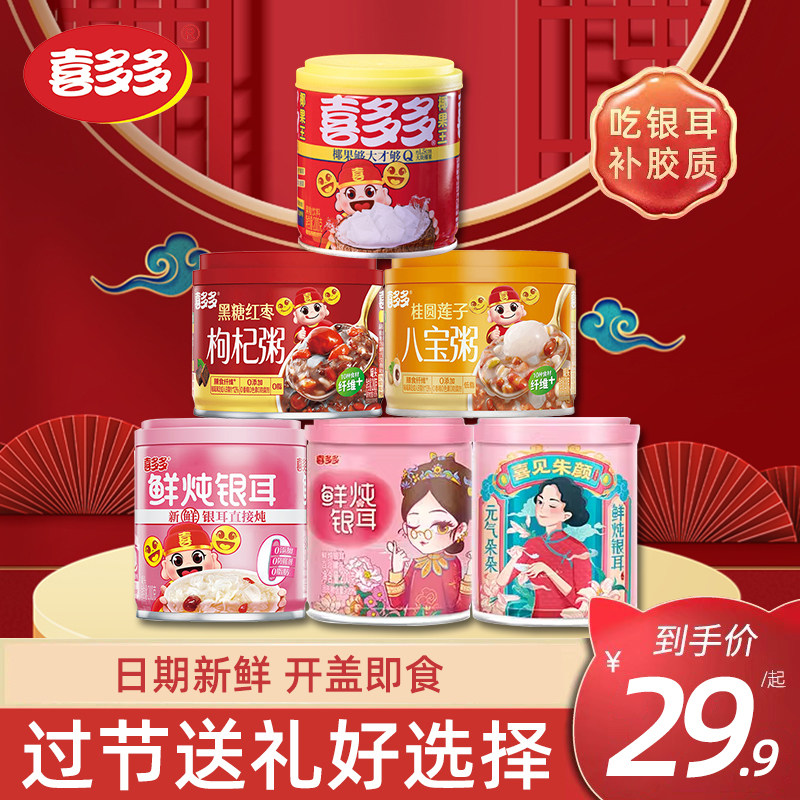 喜多多年货礼盒装水果罐头椰果王鲜炖银耳莲子羹休闲零食送礼品