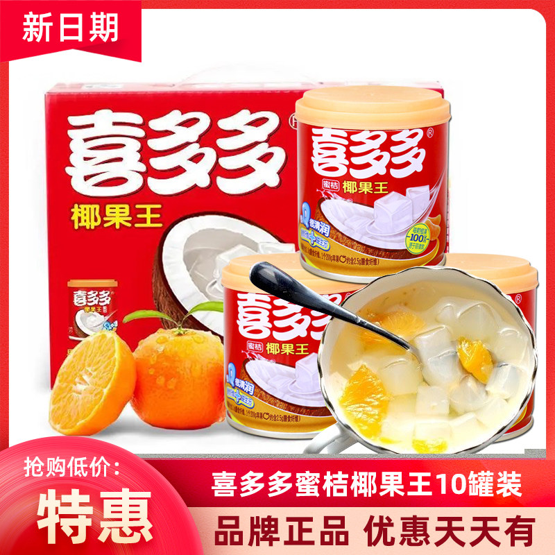 喜多多蜜桔椰果王双拼什锦水果罐头饮料橘子休闲零食 200g*10整箱