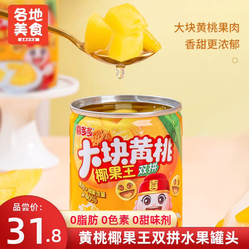 【李佳琦直播间】喜多多黄桃椰果双拼水果罐头整箱245g*6罐/12罐