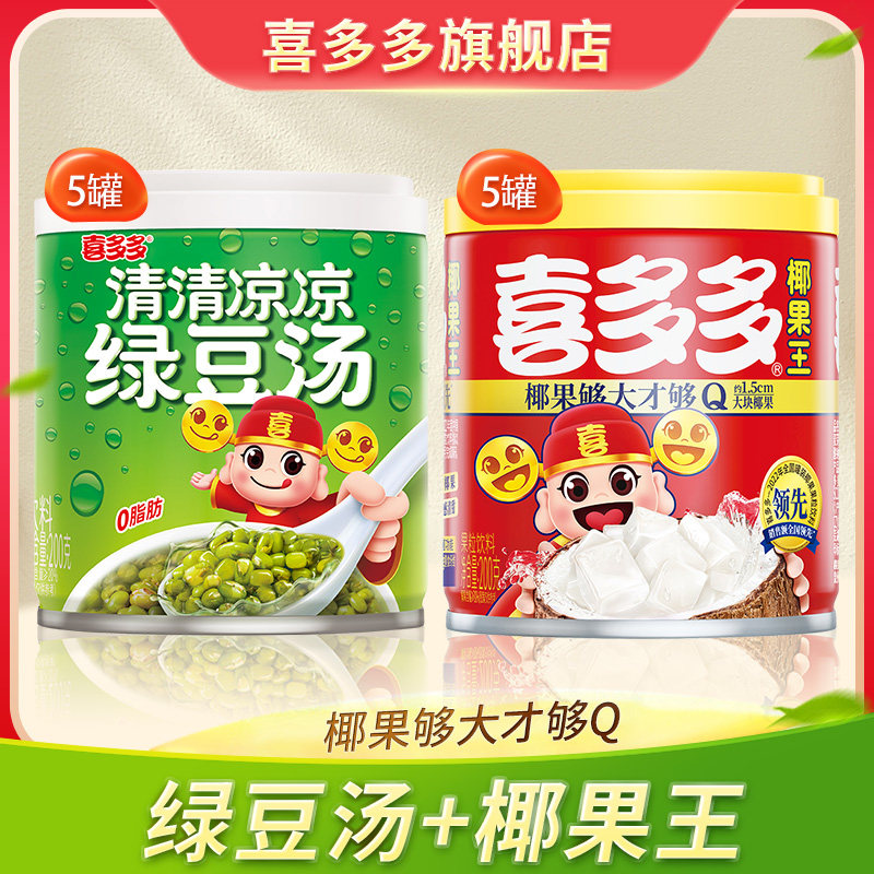 喜多多椰果王+绿豆汤罐头组合装休闲零食水果罐头饮料200g*10罐