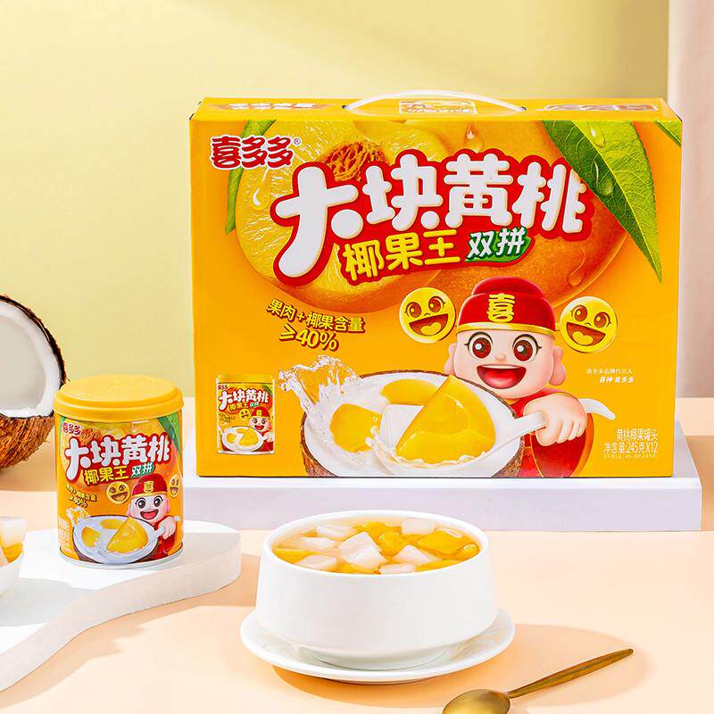 喜多多黄桃椰果双拼水果罐头245g*12罐礼盒装大果粒即食罐头礼盒