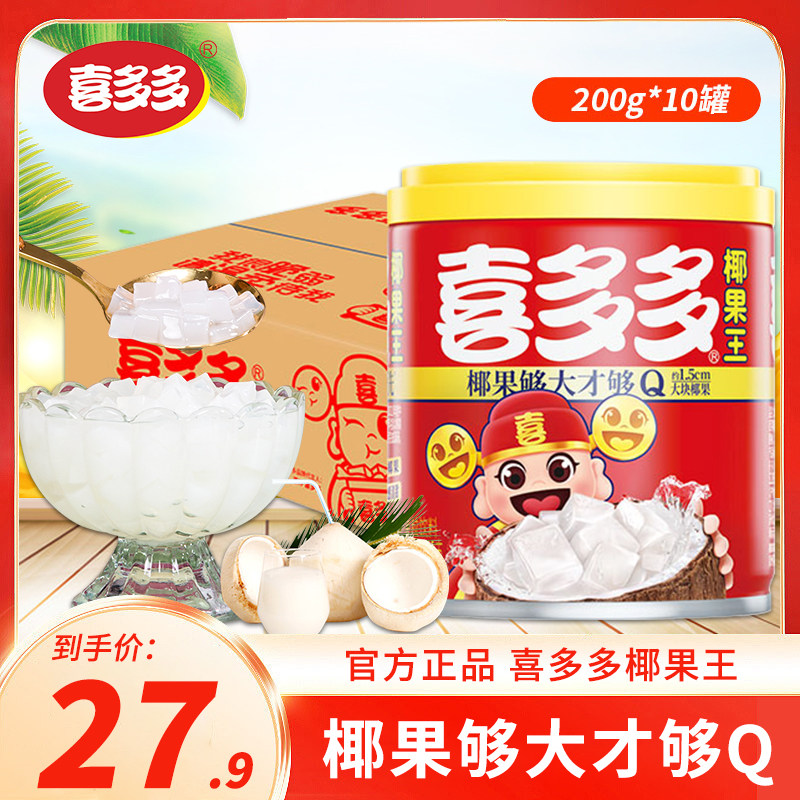 喜多多椰果王椰果水果罐头风味椰汁饮料休闲零食整箱200g*10罐装