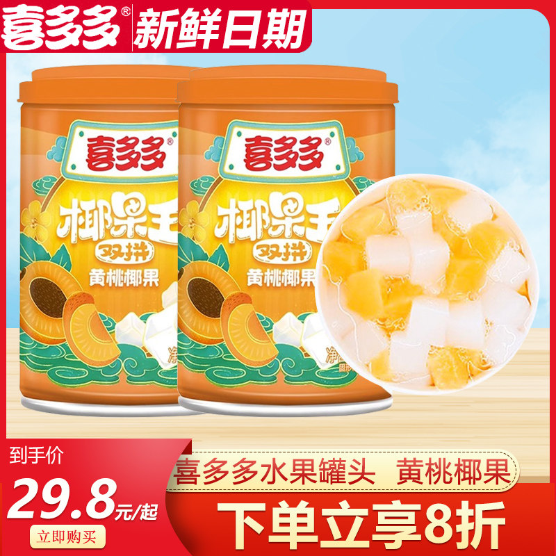 【2件9折】喜多多黄桃椰果双拼水果罐头整箱245g*6罐/12罐