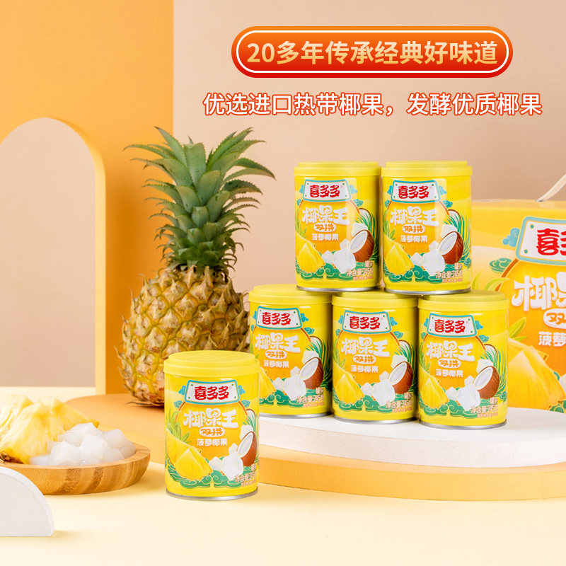 速发喜多多椰果王双拼菠萝椰果什锦双色水果罐头节庆礼盒休闲饮料