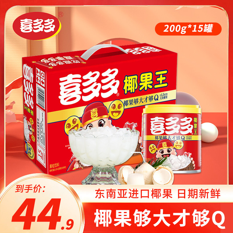 喜多多椰果王200g*15罐水果罐头即食糖水椰果饮料年货送礼礼盒装