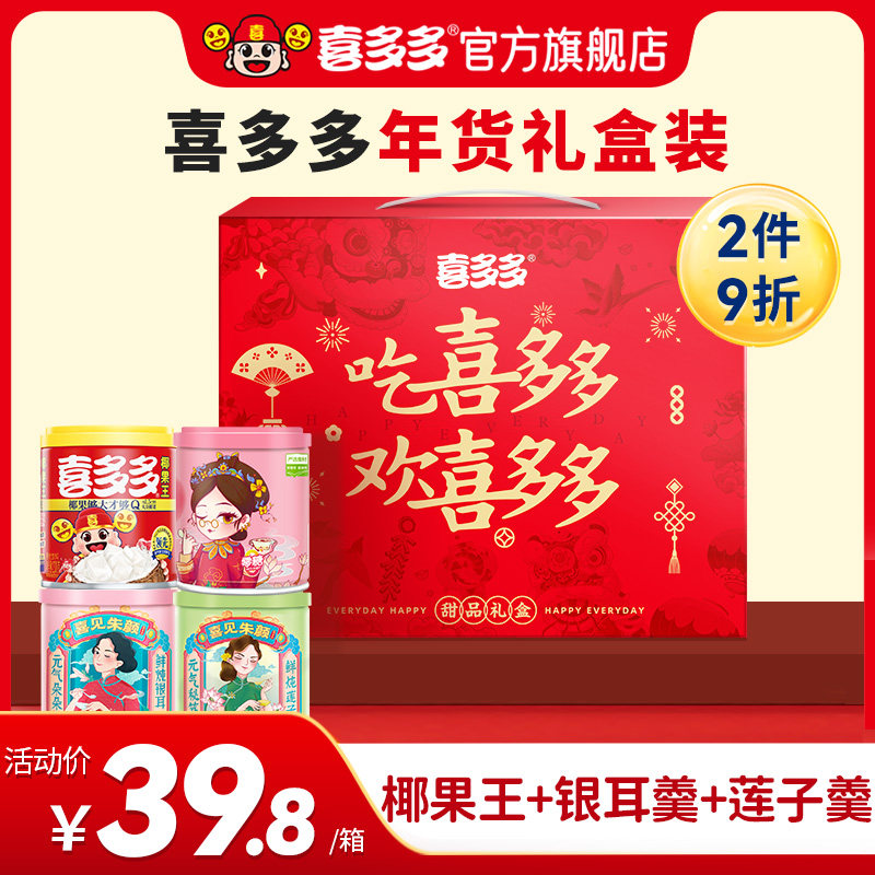 2件9折】喜多多年货礼盒装水果罐头椰果王鲜炖银耳莲子羹过年送礼