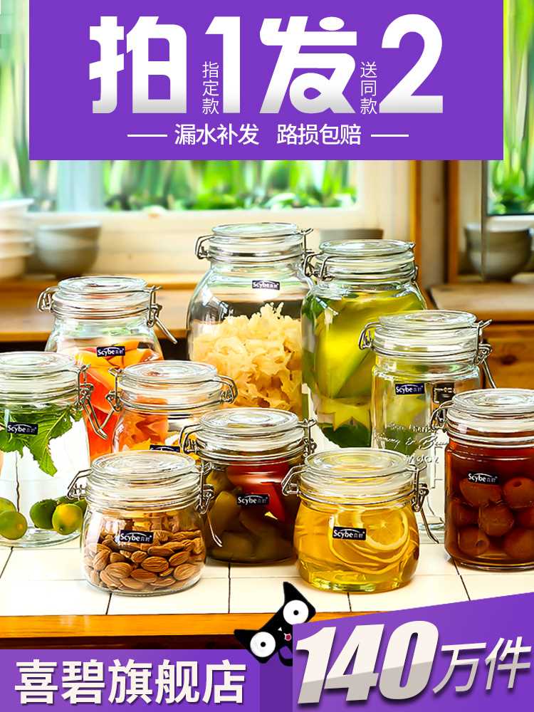 Scybe喜碧玻璃密封罐子玻璃瓶储物罐蜂蜜青梅酒奶粉糖果泡酒瓶子