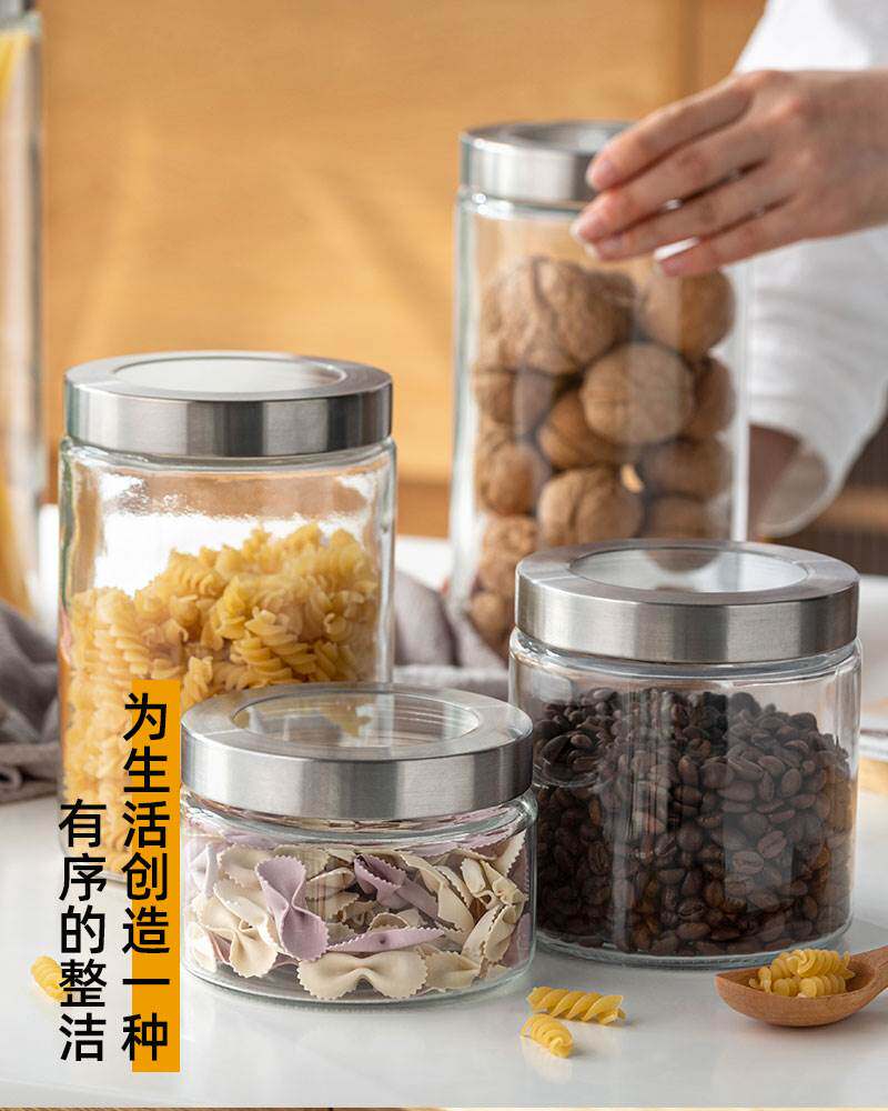 喜碧 纳吉可视盖多功能玻璃储藏罐密封罐杂粮干果罐茶叶面条瓶子