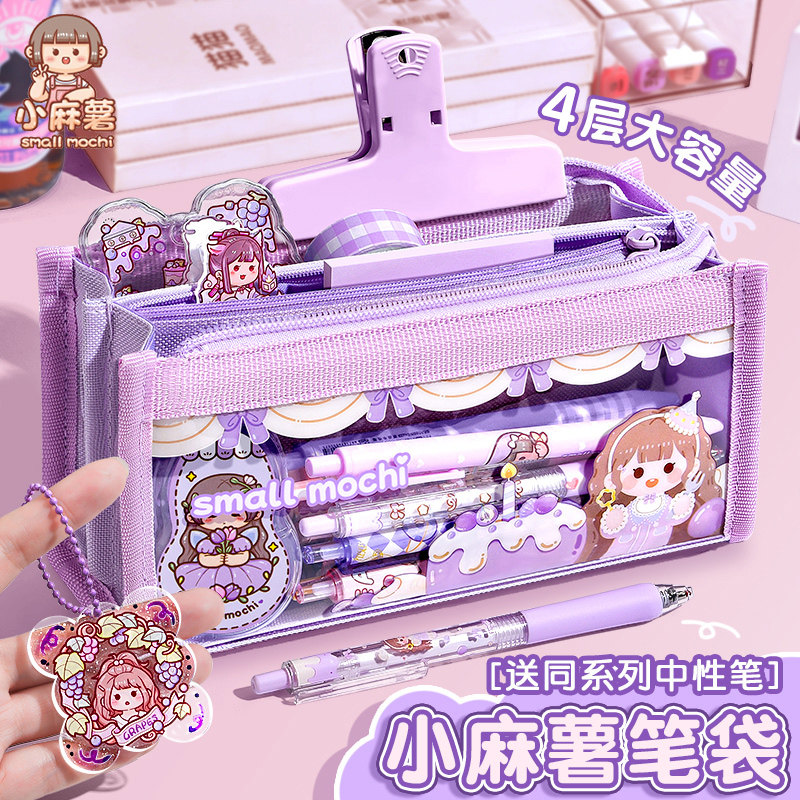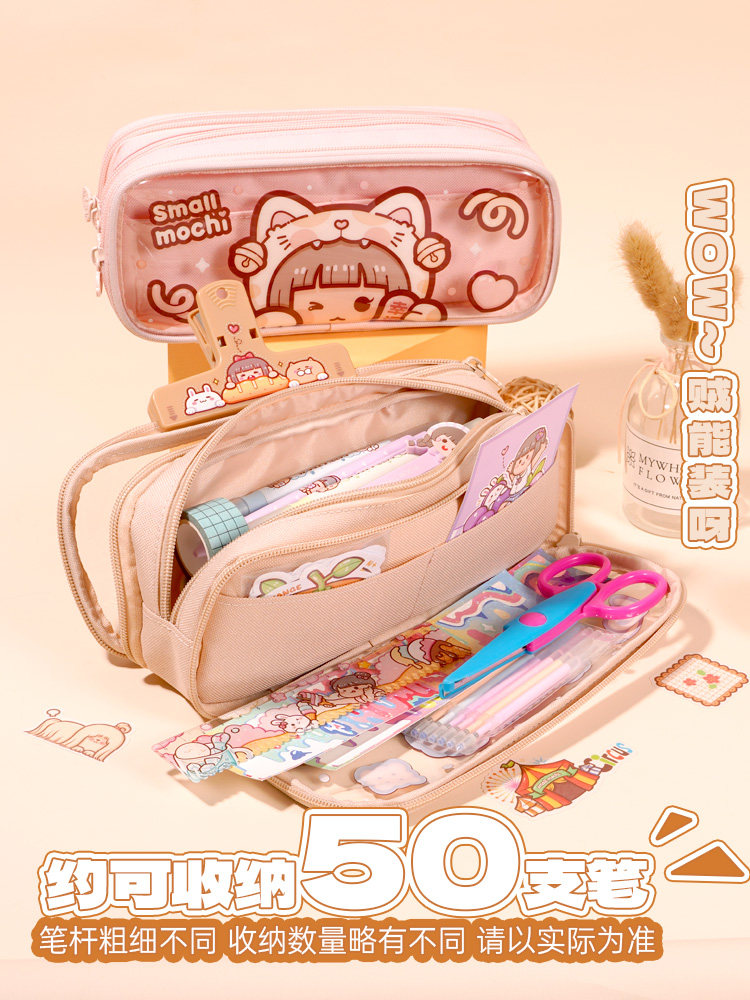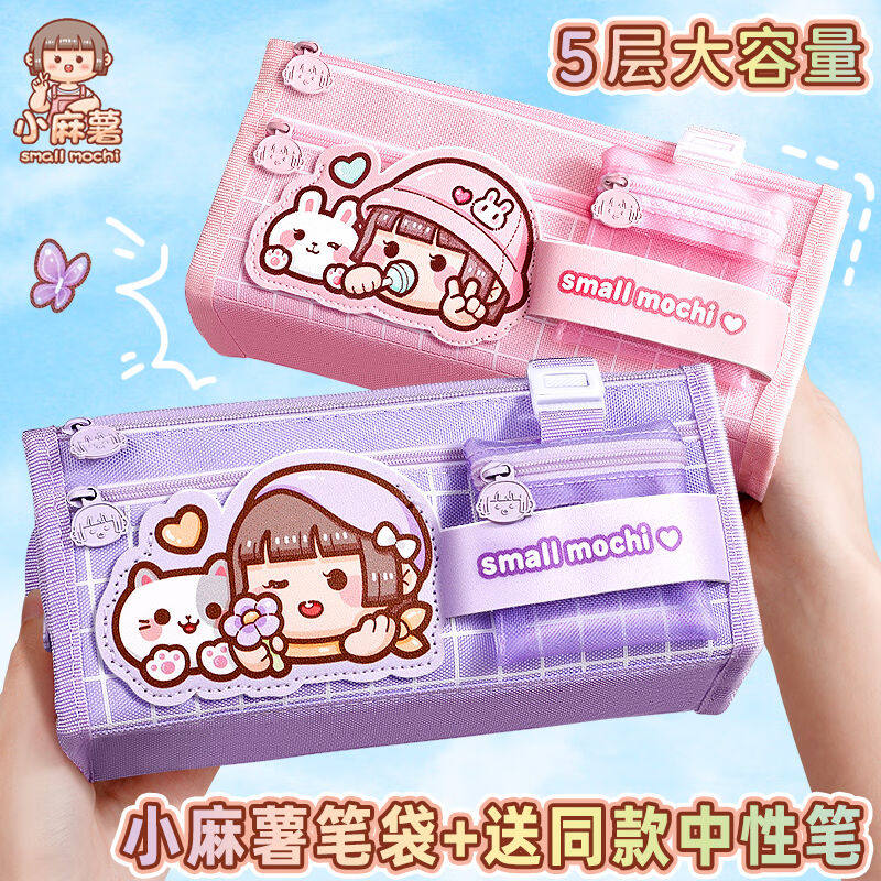 多加小麻薯笔袋大容量女孩笔袋新款流行文具盒ins日系女生小学生铅笔盒收纳袋高女颜值儿童可爱网红少女心