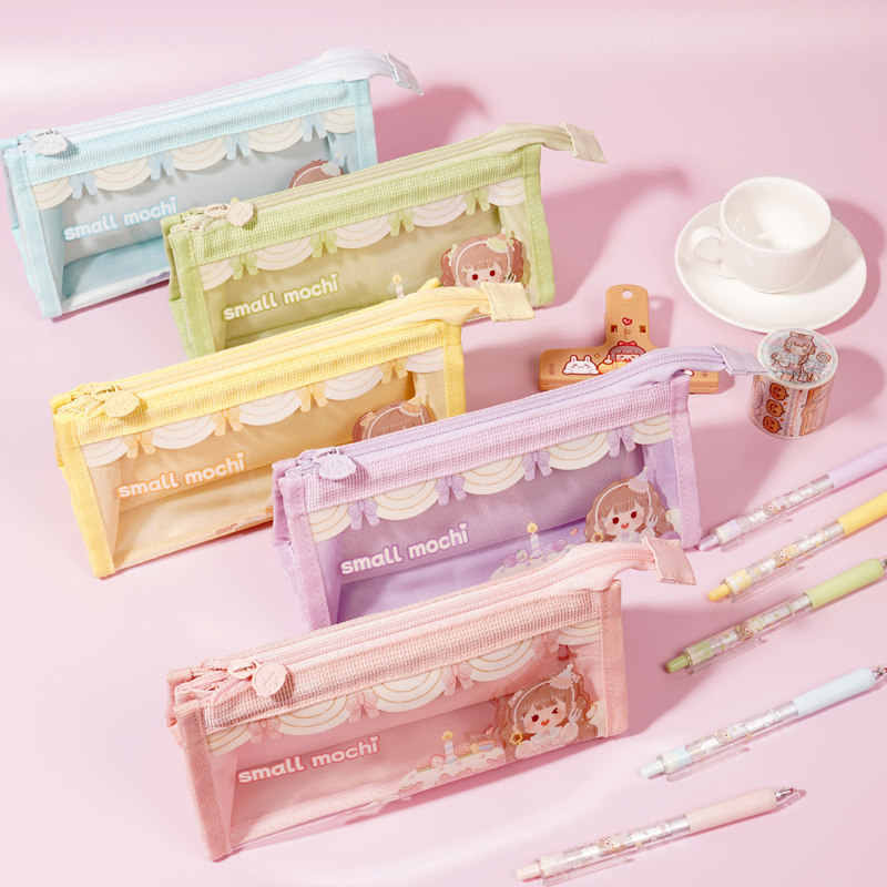 多加小麻薯笔袋大容量女孩网纱笔袋设计感小众文具盒ins日系女生