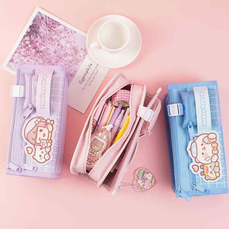 多加新款小麻薯笔袋动物系列文具盒袋男女孩款大容量中小学生透明