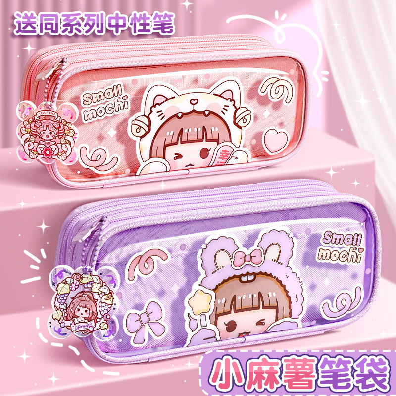「多加小麻薯新款笔袋」女孩高颜值大容量文具盒小学生透明铅笔盒