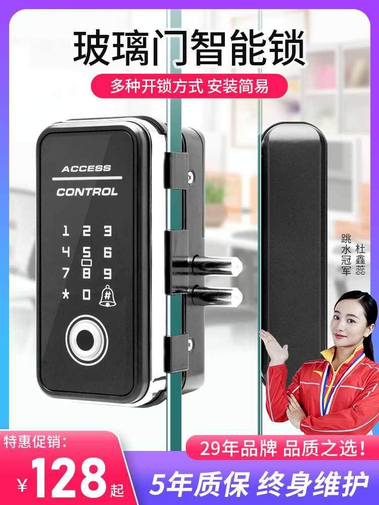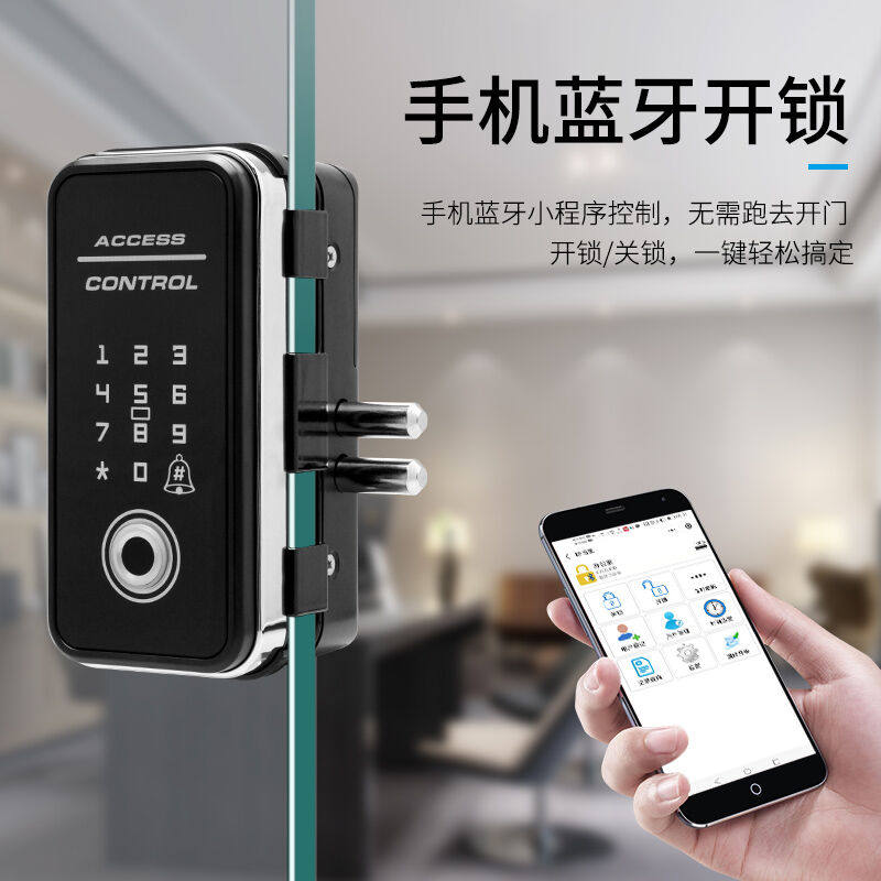 天图玻璃门锁指纹密码锁办公室单双开门禁免开孔智能电子锁遥控锁