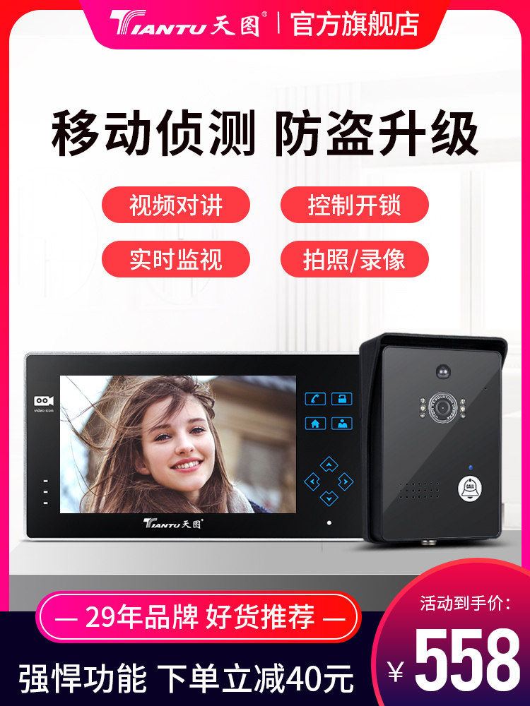 天图无线门铃家用可视对讲门禁系统别墅智能电子监控摄像头显示屏