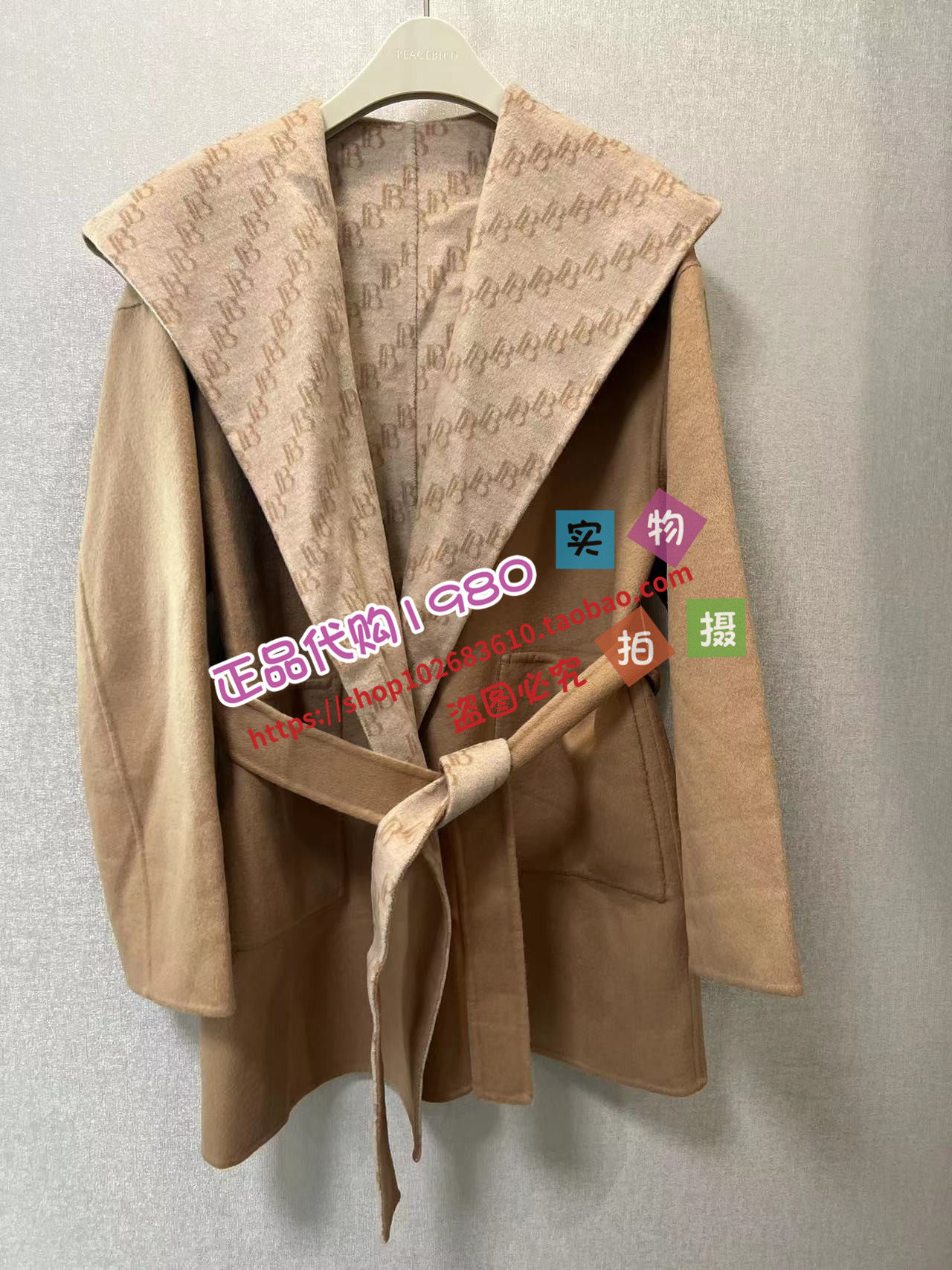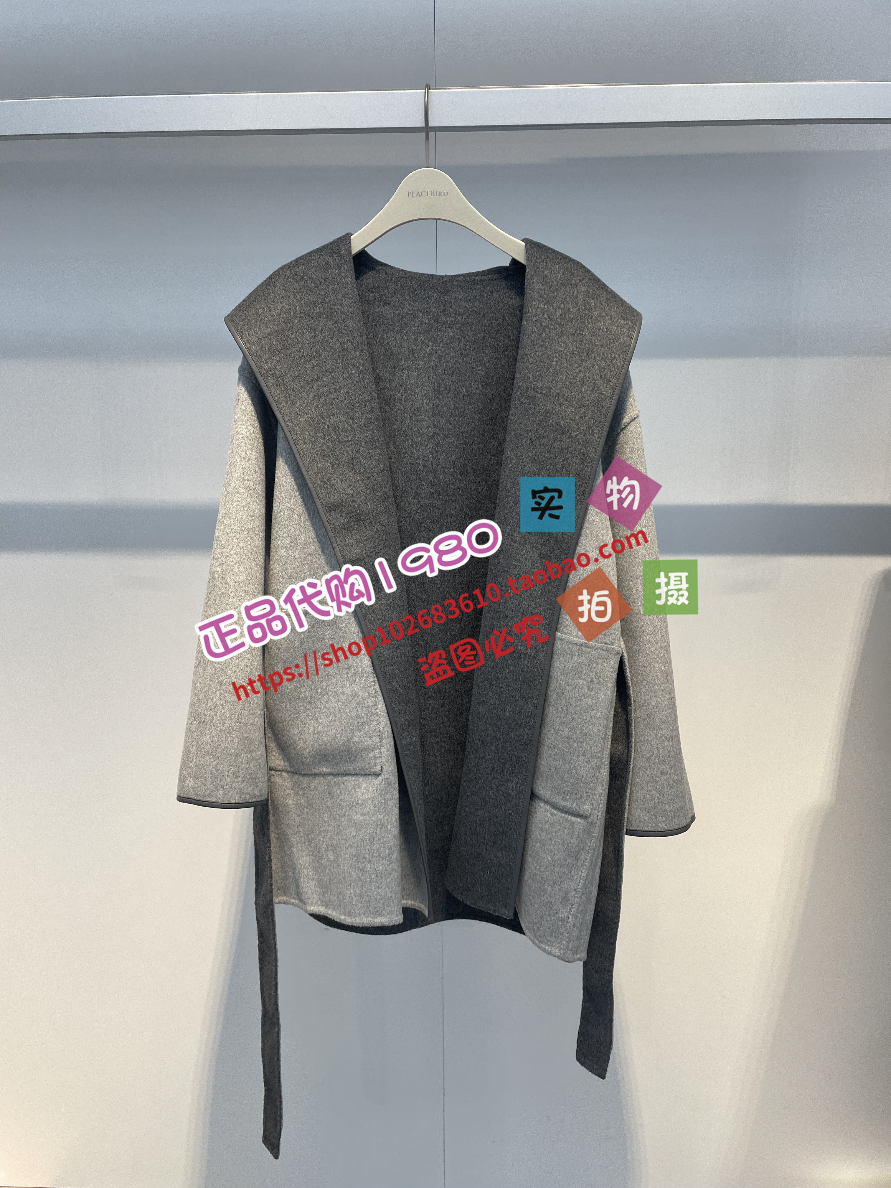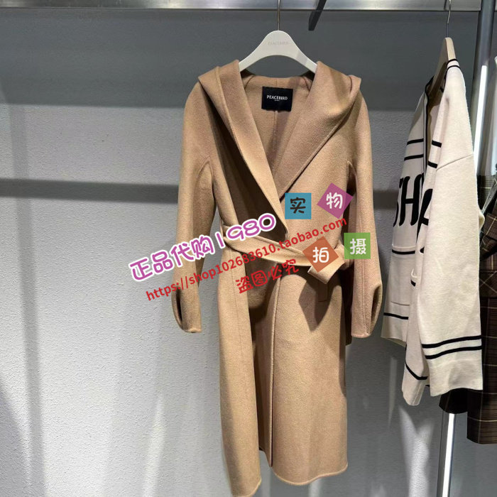 A1AAD4264太平鸟女装2023冬正品两面穿连帽双面呢大衣A1AAD4M1386