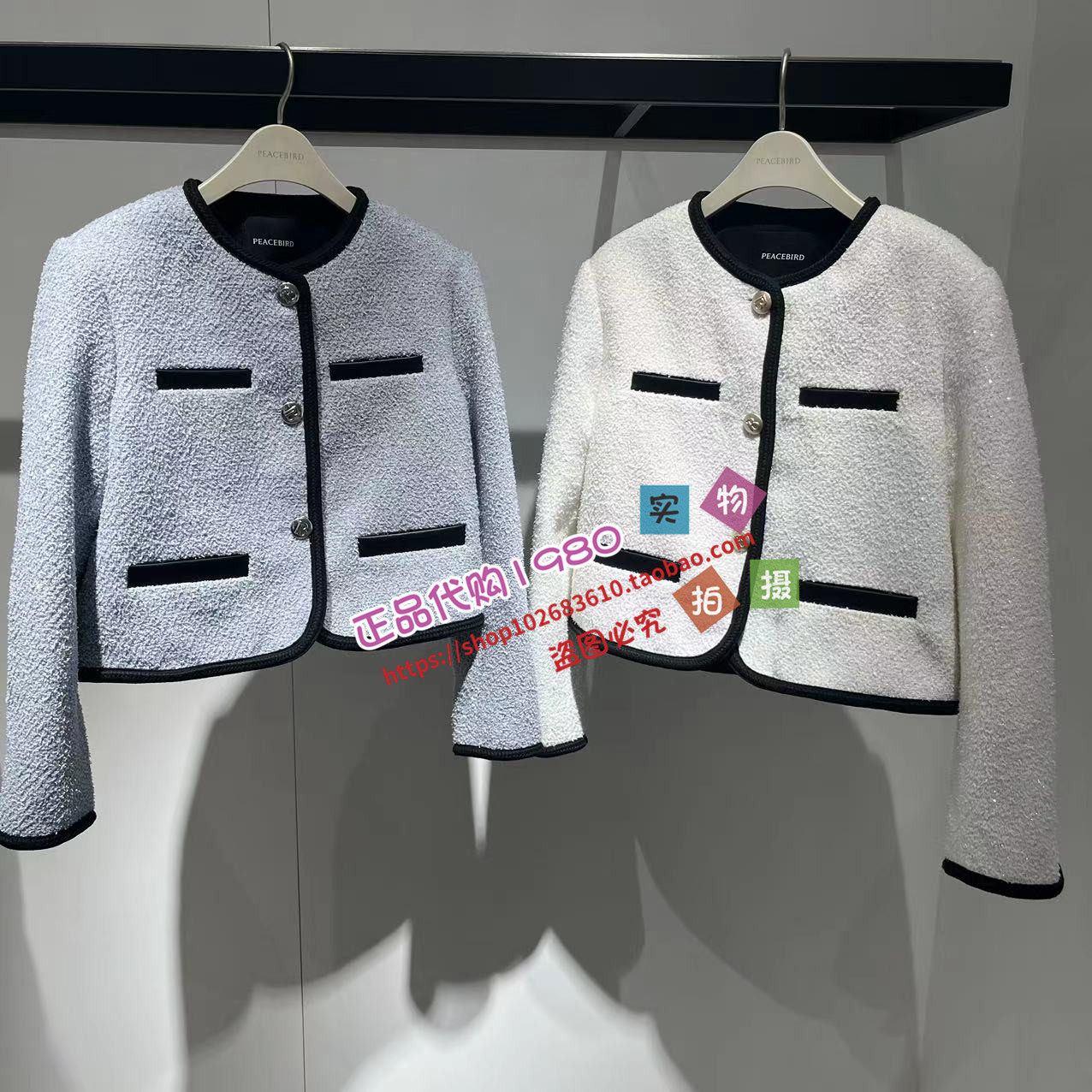 太平鸟2024春时尚撞边小香风开衫外套女A1EDE133058/A1EDE133082
