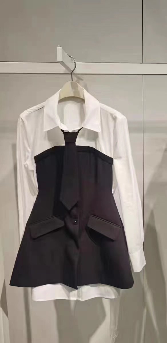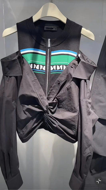 太平鸟2024春露肩假两件长袖拼接衬衫女高级感上衣女A3CDE141789