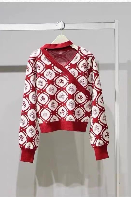 太平鸟女装2023冬装新款挂脖设计感V领套头针织衫毛衣A1EED470589