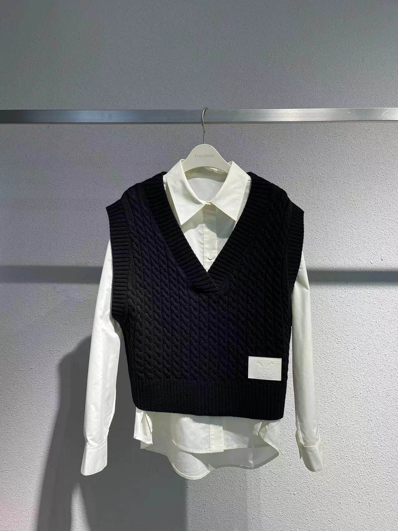 A3CAE1235太平鸟女装2024春装新款合作系列两件套衬衫A3CAE123589