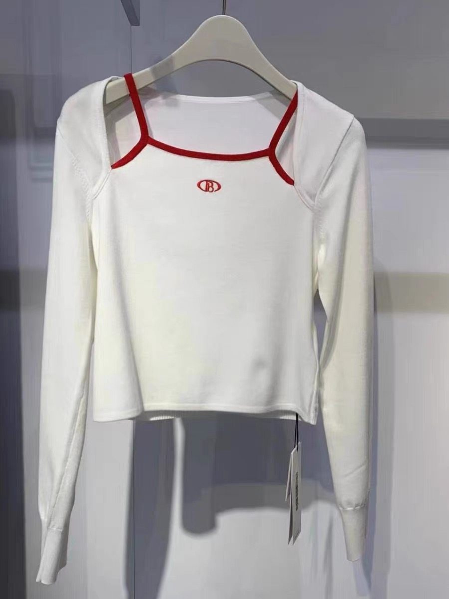 商场同款太平鸟女装2024春新款假两件修身线套衫女上衣A3EEE1224