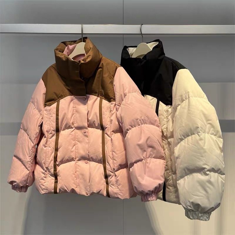 太平鸟女装2023冬新款立领短款面包服拼接羽绒服外套A3ACD455311