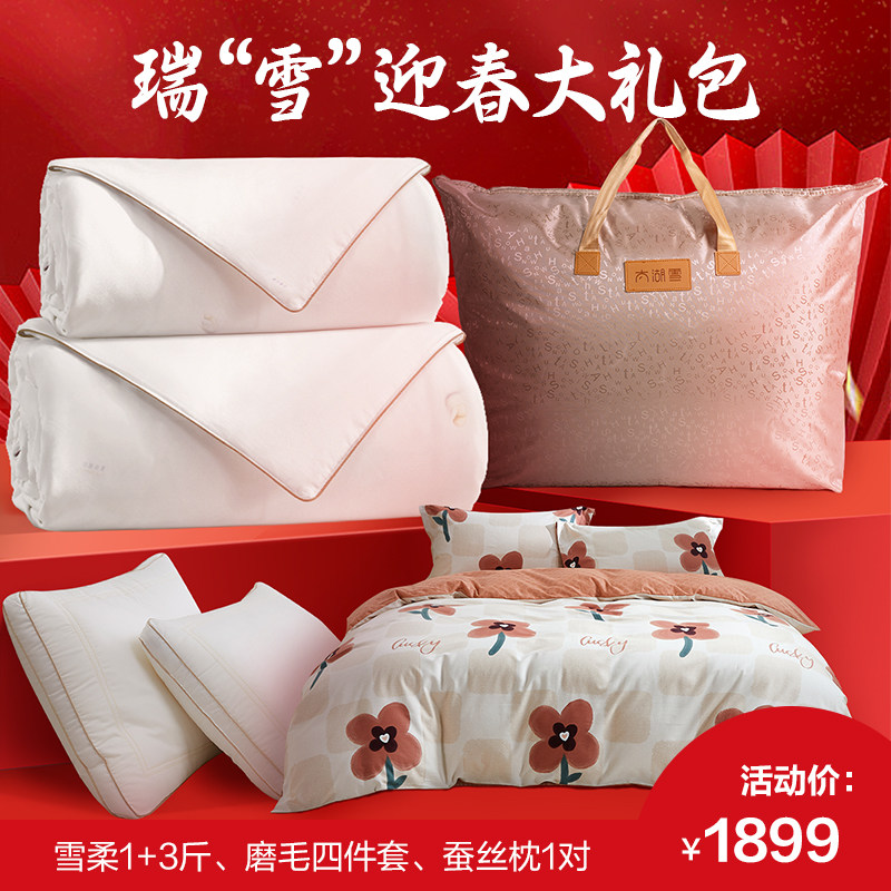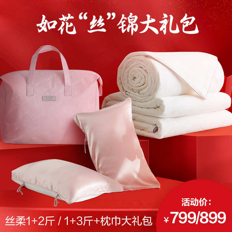 太湖雪100%蚕丝蚕丝被春秋被芯保暖子母被丝柔系列如花丝锦大礼包