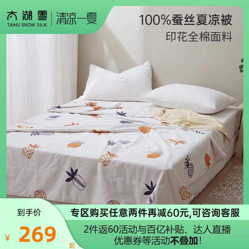 太湖雪被芯100%蚕丝被可水洗蚕丝夏凉被薄被子空调被全棉面料凤梨