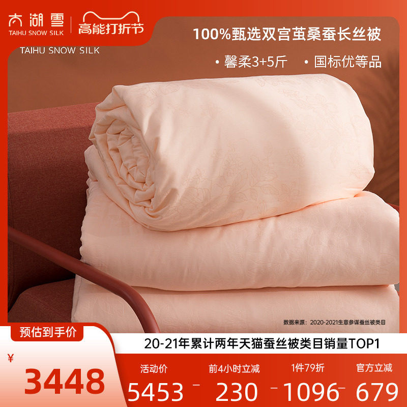 太湖雪蚕丝被100%桑蚕长丝秋冬保暖加厚被芯子母被正品沁柔3+5斤