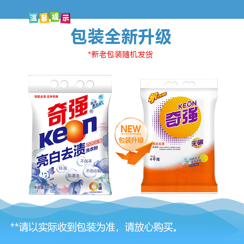 Keon/奇强亮白洁净洗衣粉4kg促销家庭装 清香型洗衣粉去油渍包邮
